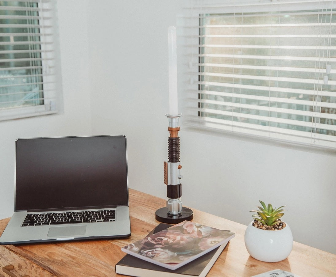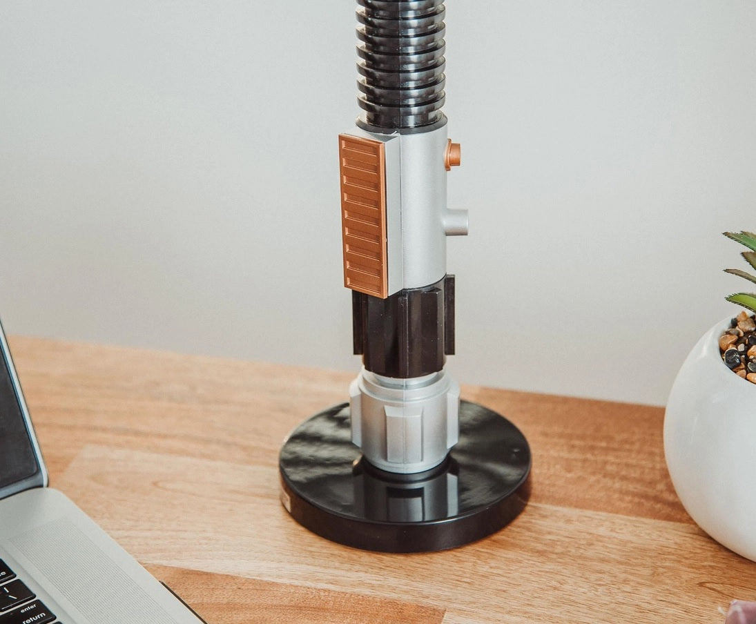 A fitting gift for Star Wars fans, this desktop lamp pays tribute to the only lightsaber used by both Alec Guinness and Ewan McGregor as Obi-Wan Kenobi. This must-have mood light is an excellent way to literally highlight your Star Wars collection.